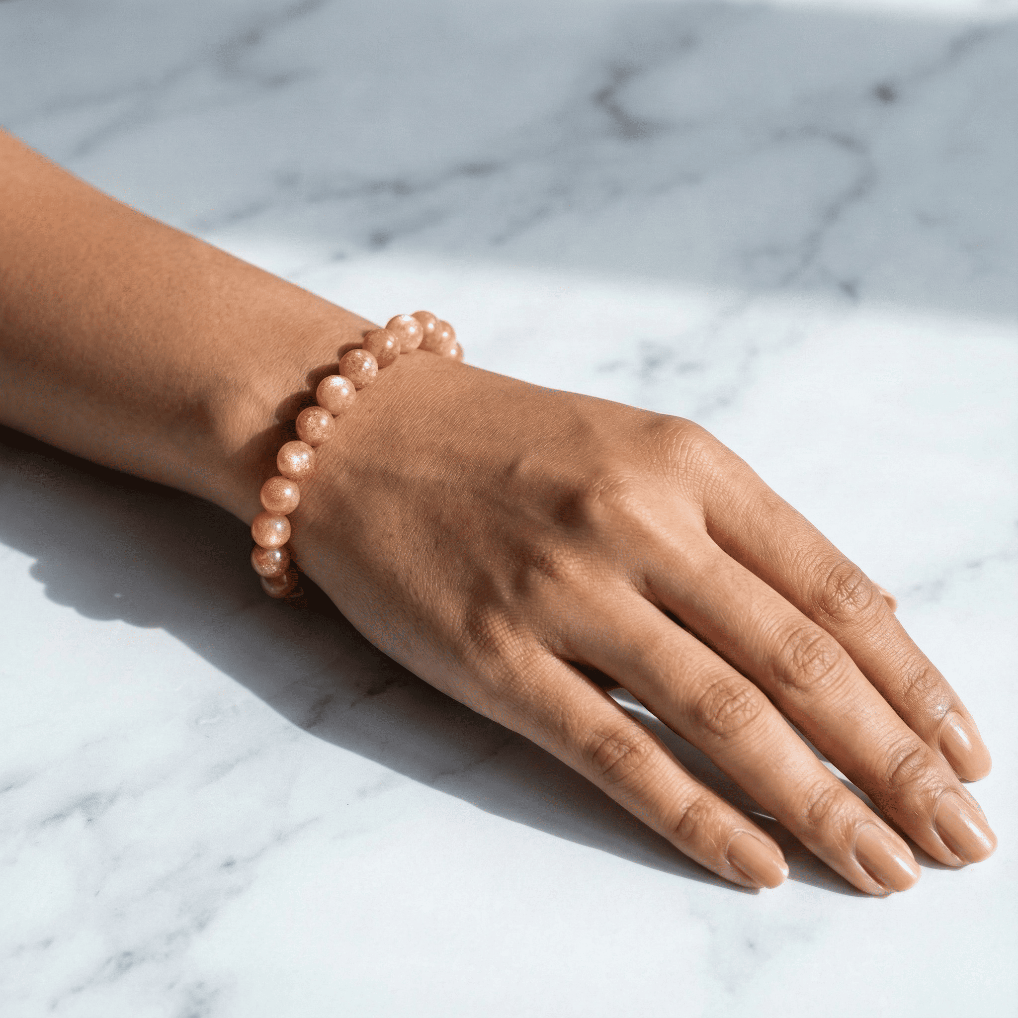✓ Sunstone radiance bracelet (8mm peach/orange sparkly)